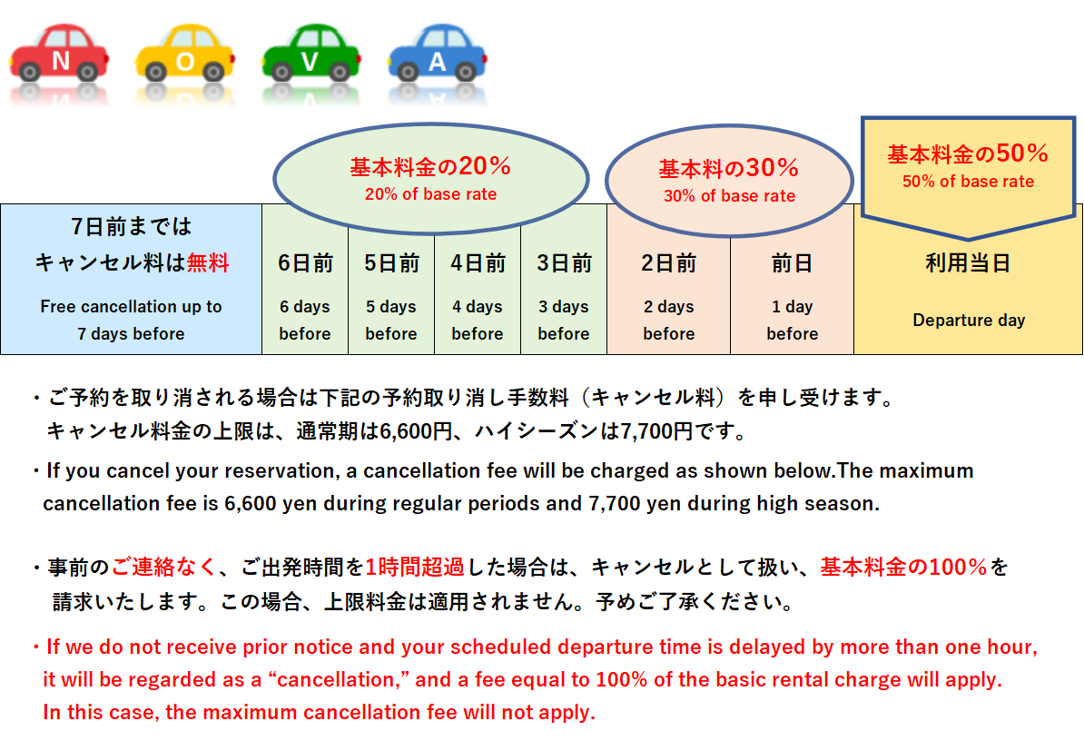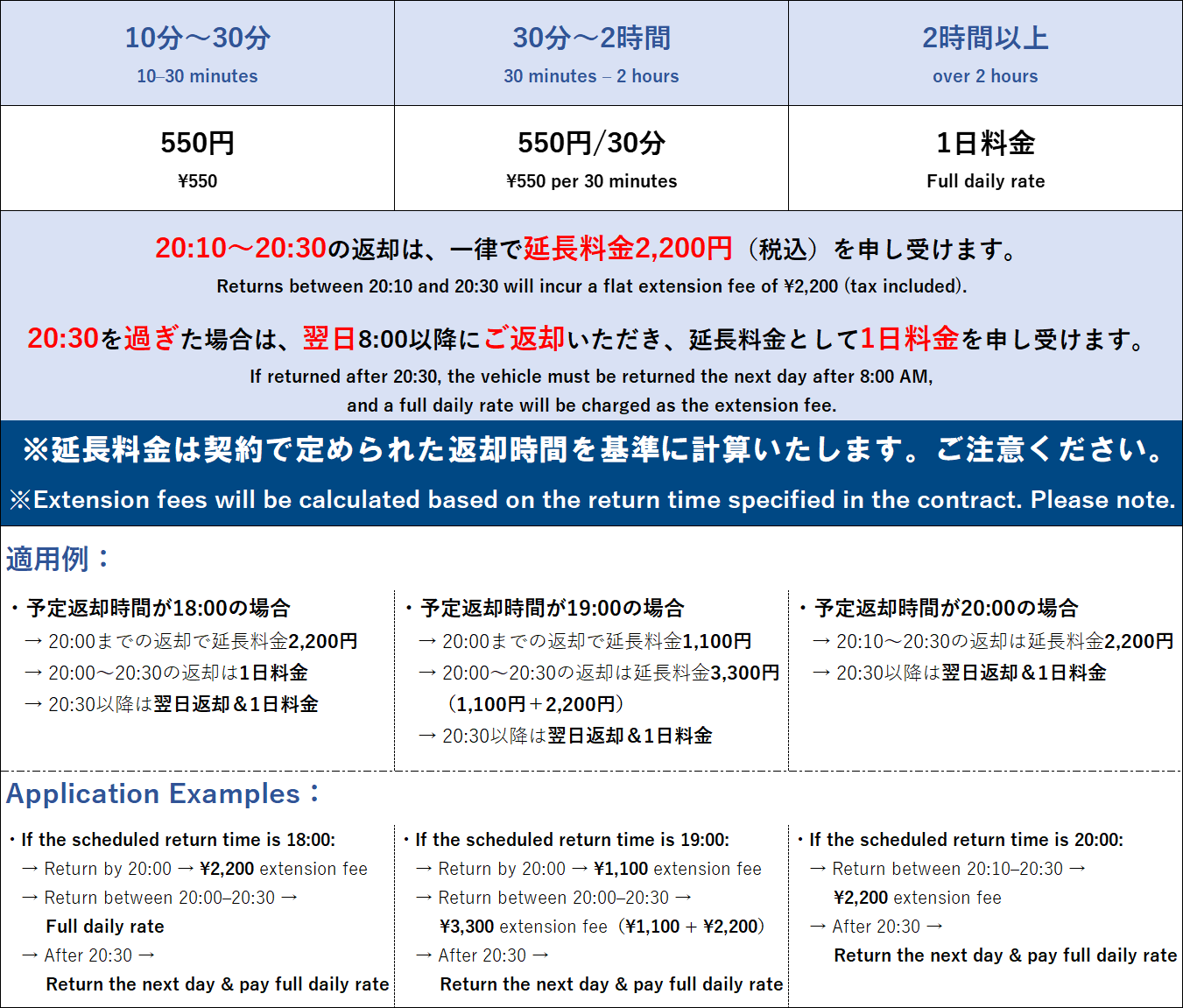 ・ご返却前に当店指定のガソリンスタンドで満タンにし、給油時の領収書(レシート)を持参し担当スタッフへご提示ください。
