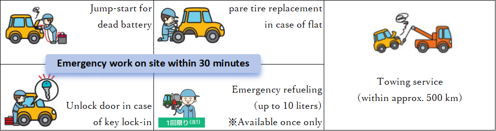 ・Waiver/relief of customer liability applies only in the case of an accident. Repair costs arising from vehicle breakdowns are not covered.