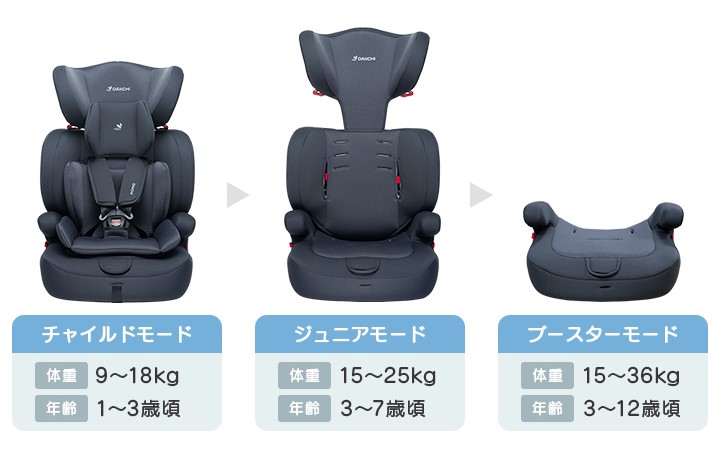 当社では、チャイルドシート、ジュニアシートおよびブースターシートを、お子様の年齢・体格に応じた児童用座席(チャイルドシート類)として、オプション備品で貸出しております。