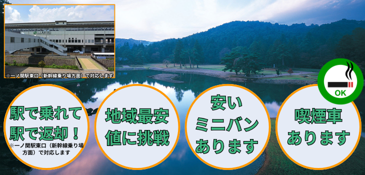 貸し出し開始時刻が24時間以内の場合はお電話でのみ承っております。 ● ご利用のお客様へのご案内 ● 駅へ到着されましたらお電話ください 【0191-48-5671 ㈱勇美 】 ご連絡をいただいてからお車を一ノ関駅東口までお持ちいたします。お時間をいただく場合がございますのでご了承ください。