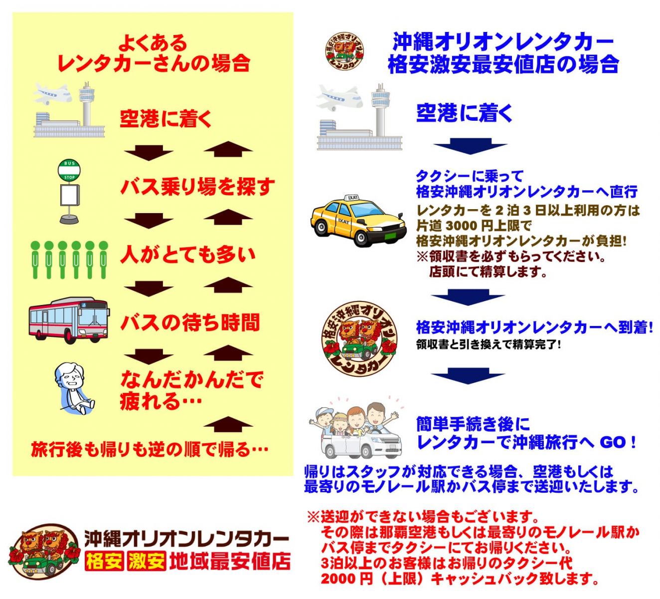 2泊3日以上利用の方は那覇空港から店舗までのタクシー料金負担!(3,000円以内まで)