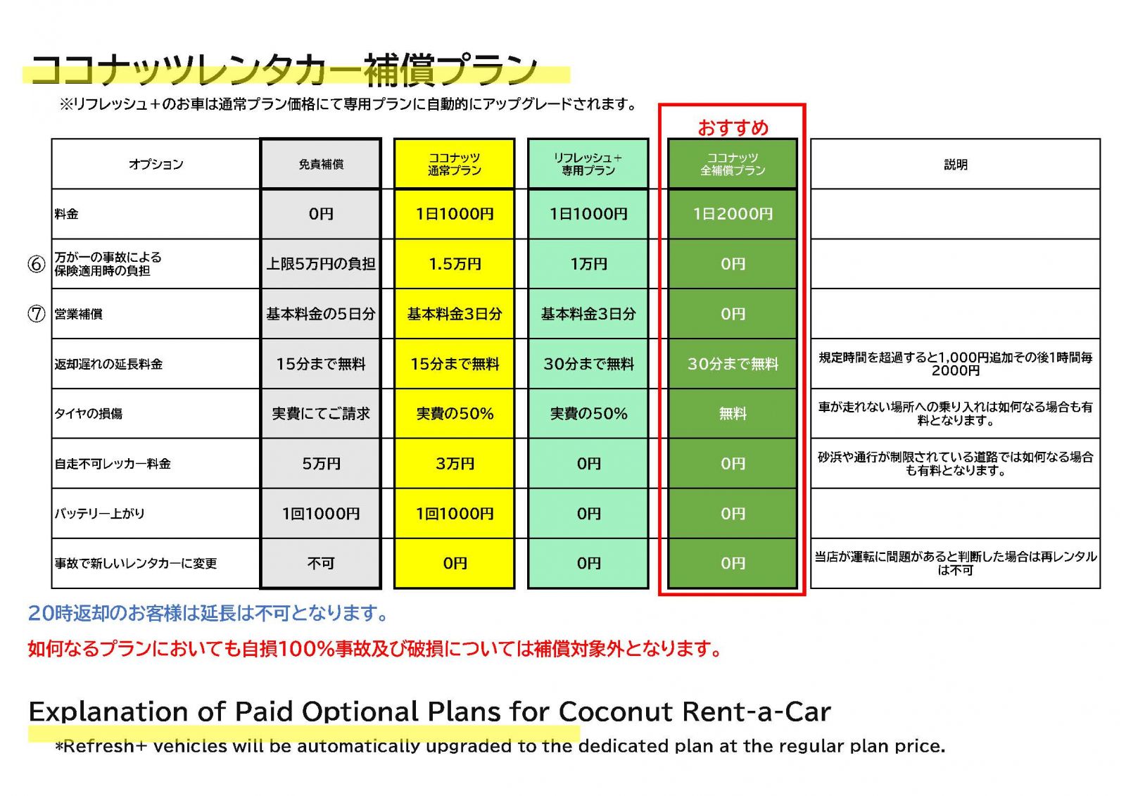 免責補償プラン(通常選択は1000円のプランとなります)受付時グレードUP可能