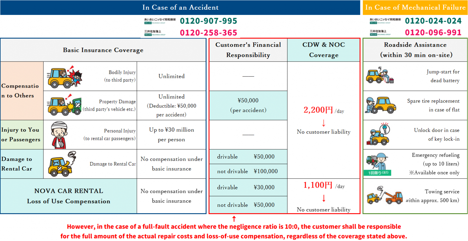 ・Customers who do not have a registered residential address in Japan are eligible to enroll in CDW and NOC coverage.
