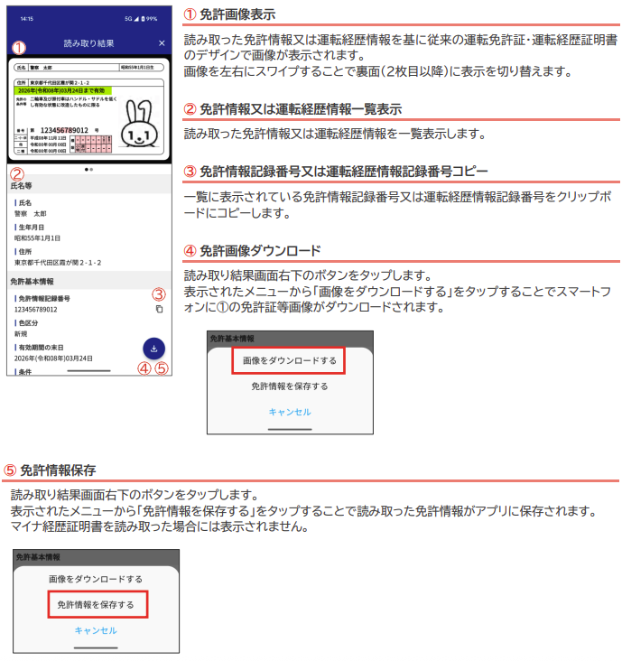 『①免許画像表示』のスクショと左右フワイプでの裏面のスクショを添付またはコピーしご来店ください。